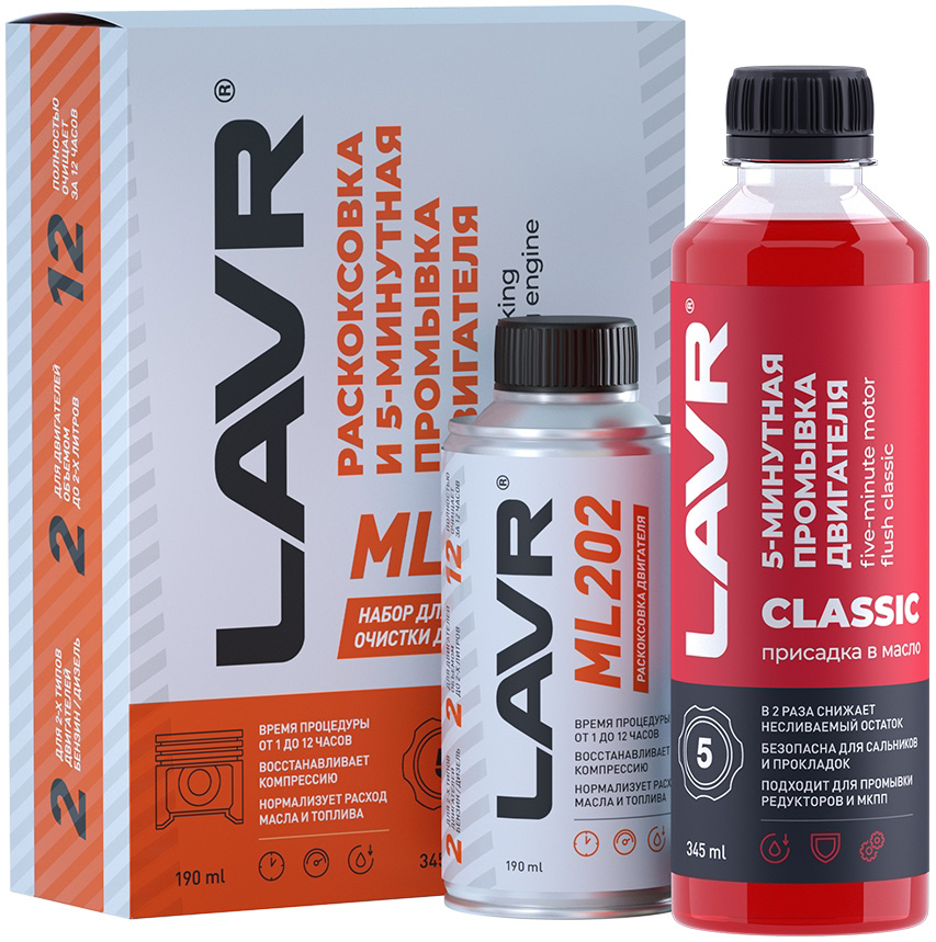 Набор: Раскоксовывание LAVR МL-202 Anti Coks + Промывка двигателя Motor Flush комплект 185мл/ 330мл