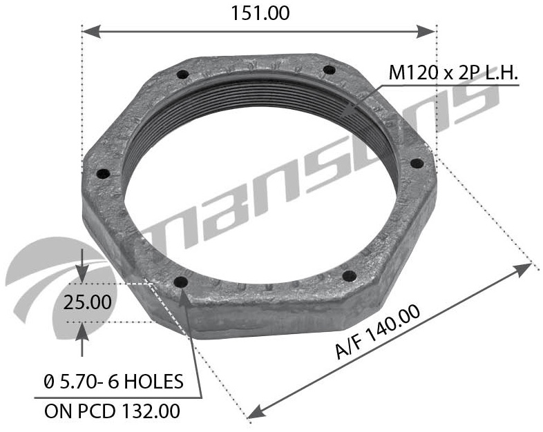 Гайка ступицы 120х2 L/25хSW140 SAF В наличии Алматы На складе Узнать цену